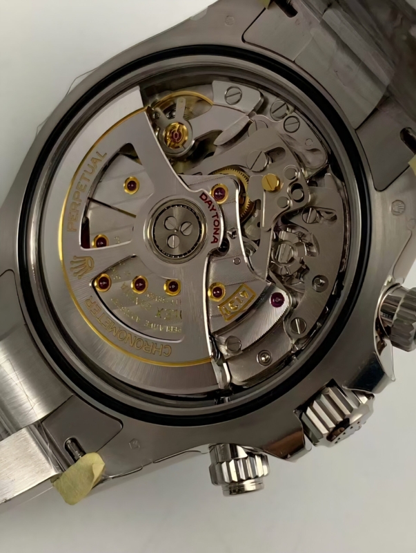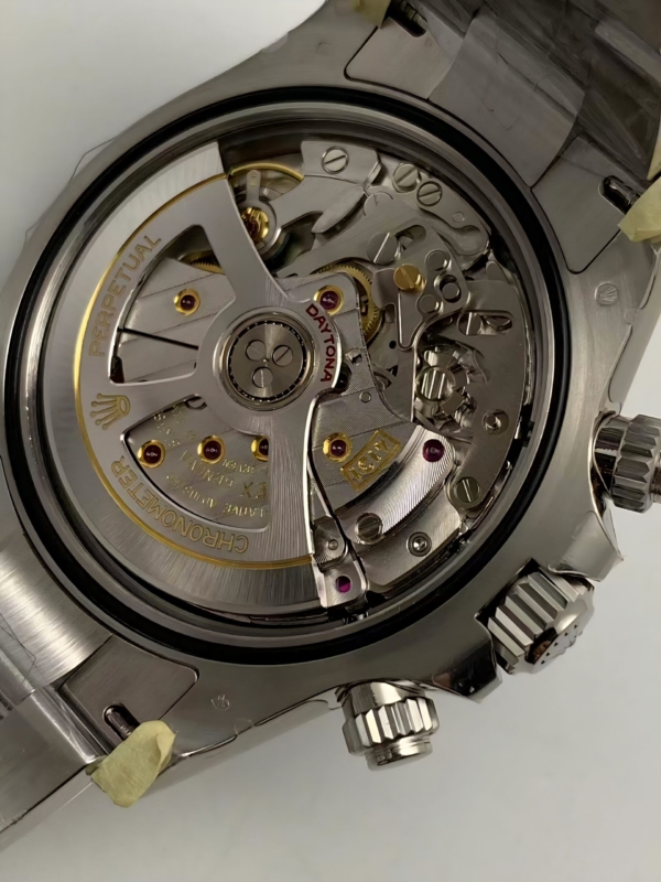 Mecanismo: Movimiento Super Clon 4131, con una frecuencia de 28800 alternancias por hora, replicado 1:1 del movimiento genuino, movimiento 4131.