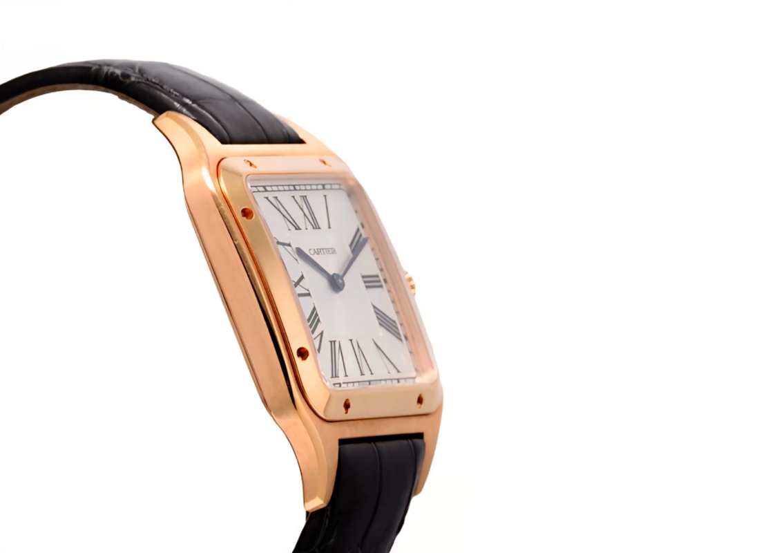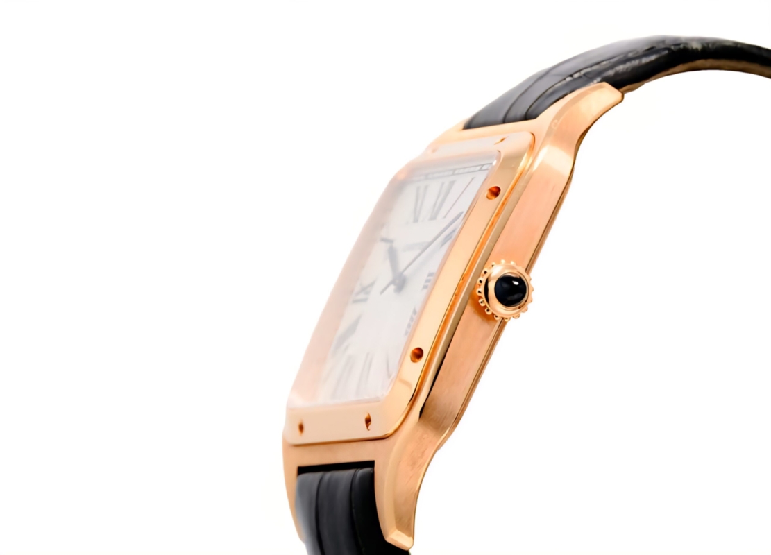 2026 «Nuevos Relojes» Cartier presenta el reloj Santos-Dumont XL con movimiento de cuerda manual (tamaño: 46,6 x 33,9 mm). Tras el gran éxito de los nuevos relojes Santos-Dumont Medium y Small Quartz Pair, lanzados en 2019, la industria esperaba que Cartier lanzara una versión más masculina del mismo reloj. Watches & Wonders 2020 traspasa los límites del estilo y las proporciones con el lanzamiento del Santos-Dumont XL Hand-Wind Calibre XL Plus Size, aún más evocador y adecuado para relojes de pulsera masculinos. Y lo que es aún más sorprendente, este reloj está equipado con un movimiento de cuerda manual de taller Calibre 430. ¡ Nuestra Factoría fue la primera en adquirir este reloj para una réplica detallada a escala 1:1!