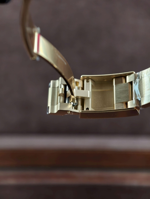 MATERIAL DE LA CAJA: Acero inoxidable sólido 904L con baño de oro amarillo de 18 quilates.