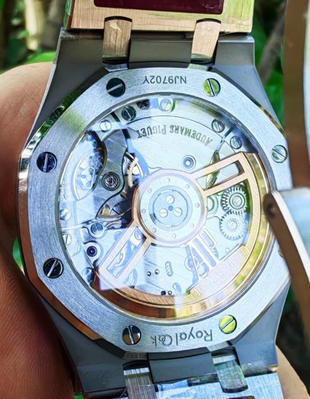 MOVIMIENTO: Calibre automático Superior Clon 4302, con puentes decorados y rotor replicando el calibre AP 4302 original.